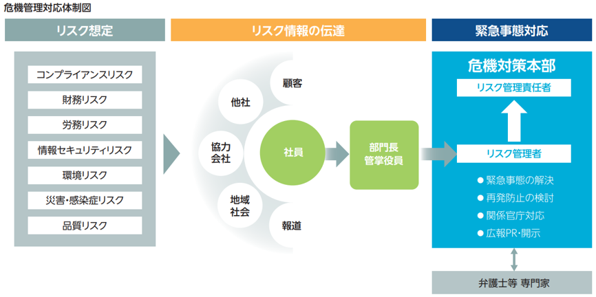 順法経営の徹底を図るため、当社代表取締役社長を委員長とするコンプライアンス委員会を設置し、コンプライアンスに関する諸問題(是正処置および再発防止策)の審議、コンプライアンスに関する取り組み状況の確認・評価・改善指示等を行っています。