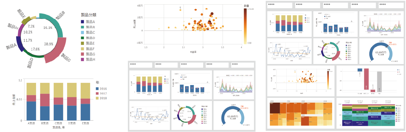 SkyScraper BIは、各アプリケーション等に蓄積された情報を分析・集計し、見える化するシステムです。 直感的な操作でデータを統合、分析、可視化することができ、意思決定に役立つデータ活用を支援します。SkyScraper製品群のデータベースだけではなく、SkyScraper以外のシステムデータ、Excel データ、テキストデータを統合できるため、多角的な分析を行うことが可能です。